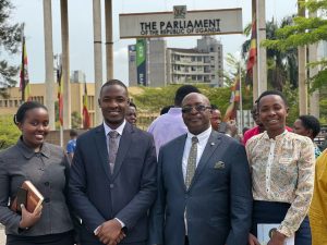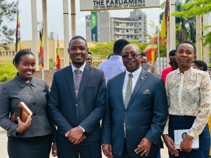 The 20th Guild Speaker of Bishop Stuart University, Rt. Hon. Muhandiki Allan, together with his Deputy Speaker, Rt. Hon. Natamba Predious, and the Minister for Justice and Constitutional Affairs, Hon. Tana, paid a significant visit to the Parliament of Uganda.