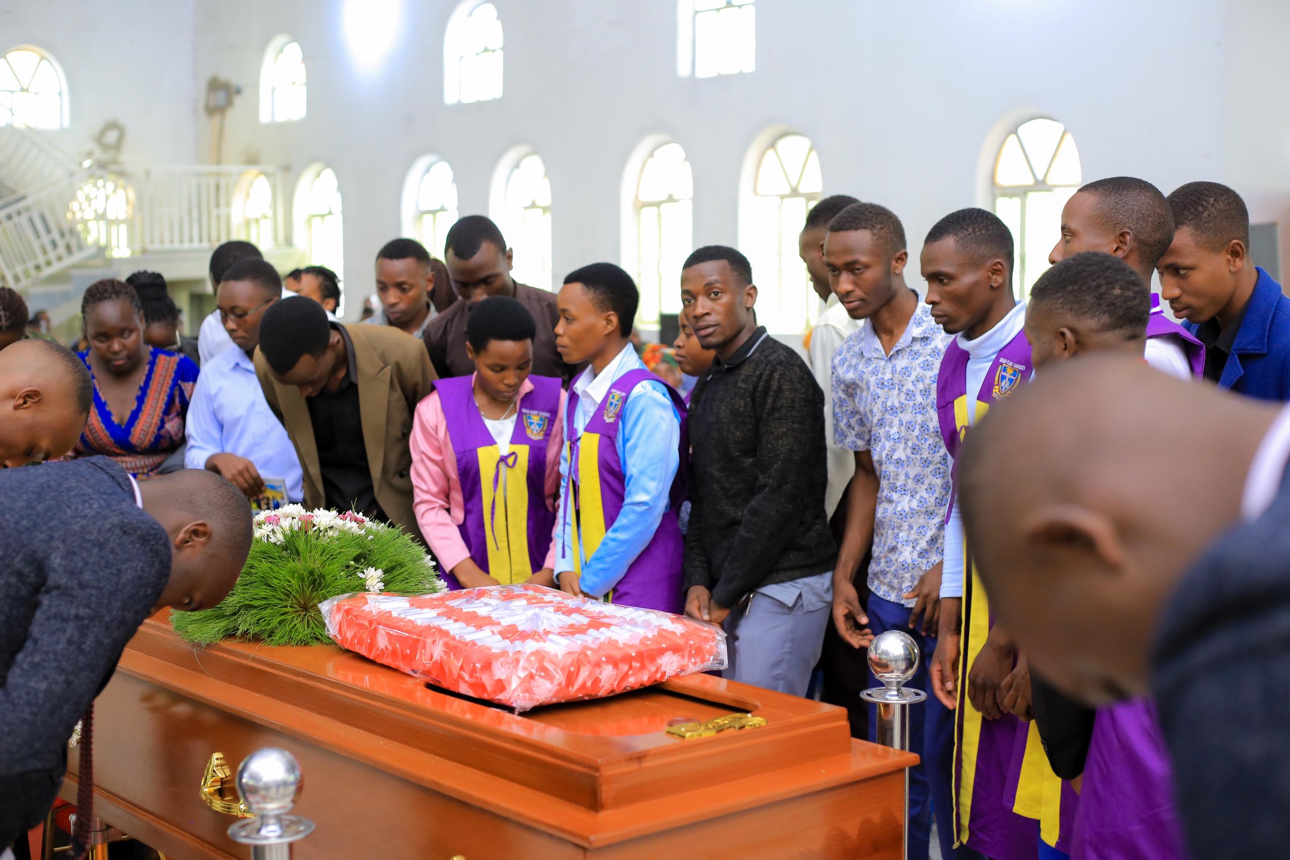 On 11th March 2025, representatives from the 20th Guild Government joined students and members of the Bishop Stuart University Bafumbira Association to mourn and support Mwiza Martha, a Diploma in Information and Technology (DIT) student under the Department of CLIT, as she laid her father, Sir Napoleon, to rest. The delegation was led by Hon. Asingwire Martin (GRC BIT), Hon. Humura Ivan (20th Chief Fresher), and Hon. Nayebare Alex (Minister of ICT), who attended on behalf of the Guild Government to express solidarity and extend their condolences to the bereaved family.